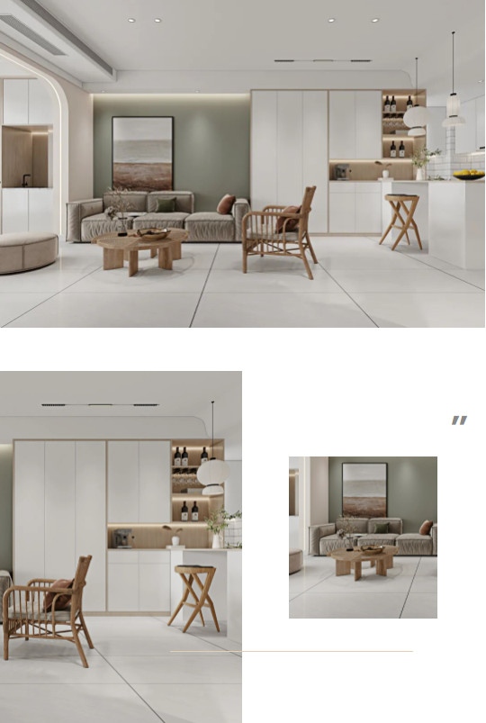 客廳選用通體瓷拋石中板貝加爾湖為背景,搭配質(zhì)樸原木色,把平和舒緩的氛圍植入到每個角落,暖色的燈光仿佛在演繹著春天的活力,整個空間溫馨而靈動。