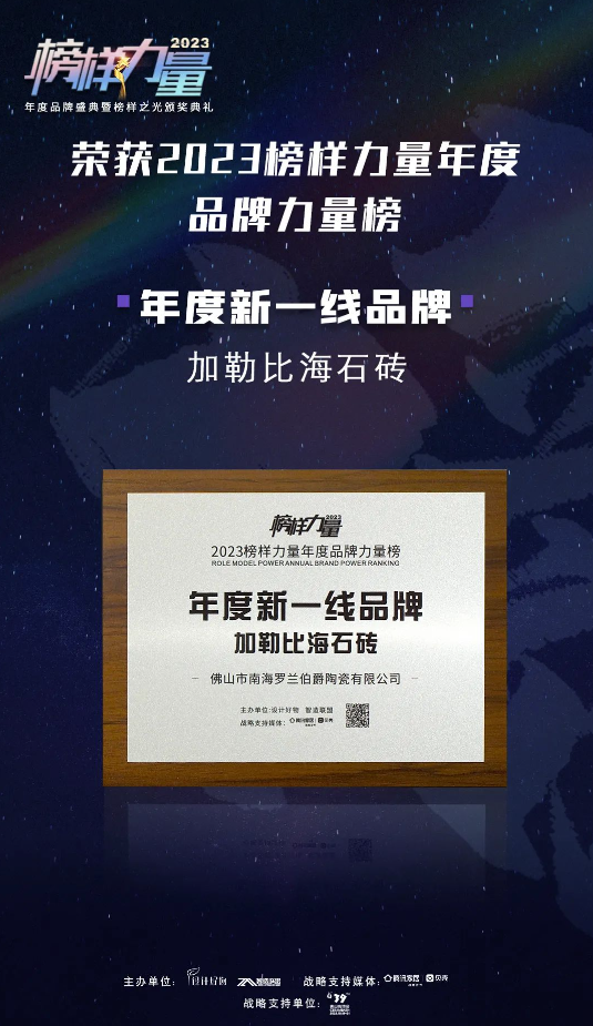 此次榮獲“年度新一線品牌”,不只是榮譽(yù),也是一份信任。展望未來,加勒比海石磚將把品牌建設(shè)放在更加突出的位置,以創(chuàng)新引領(lǐng),以奮斗踐行,持續(xù)提升經(jīng)營力、產(chǎn)品力、服務(wù)力和影響力,不斷滿足人們對美好生活的需求,實(shí)現(xiàn)高質(zhì)量、高能量發(fā)展。