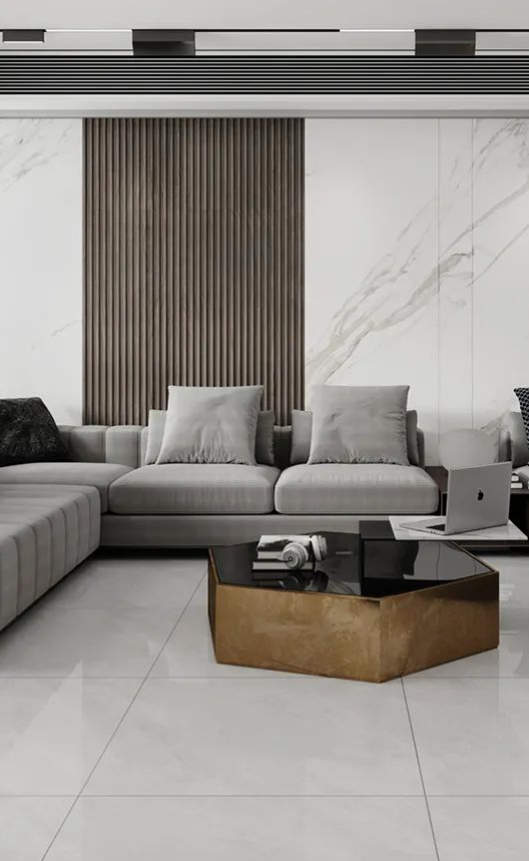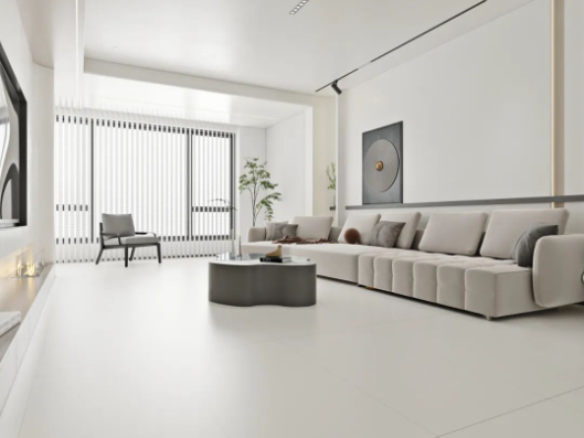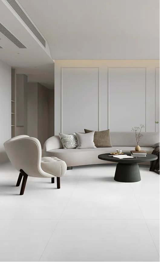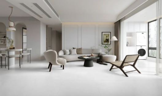 喜翡穩步磚席夢娜采用核心瓷拋工藝,擁有 90°透亮表面,坯體白度 34 度以上,低飽和度的灰色系,從內而外煥發出優雅氣質和天然神韻,輕松打造開闊、明朗的空間效果,勾起人們對于繁忙生活后平靜放松的追求。
