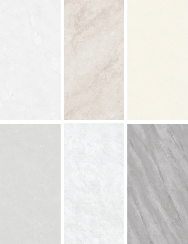 該系列從色彩漸變、光澤層次、肌理觸感到整體設計,都精準捕捉天然石材的靈魂,不僅高清復刻大理石的肌理層次,更通過現代工藝的淬煉,賦予其超越自然的表現力,讓每寸空間都流淌著高定版的輕奢格調。